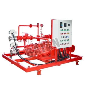 1.The balanced proportioning device consists of a normal-pressure foam liquid storage tank, a foam liquid pump, a motor, a balancing valve, a safety valve, a double-needle pressure gauge, an electric inlet valve, a return valve, a discharge valve, a positive check valve, a discharge valve, a purge valve, a drain valve, a proportioning mixer, and supporting pipe fittings and piping.