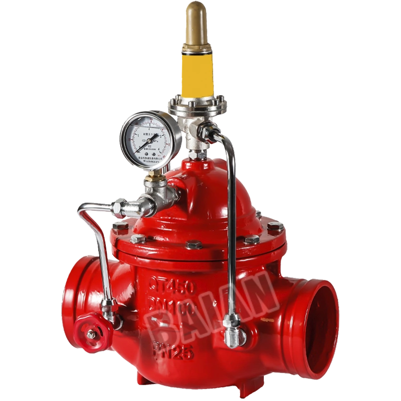 The Grooved Type Pressure Relief Valve automatically releases excess pipeline pressure to ensure system safety, with groove connection for quick installation, adjustable relief threshold, and max 16 bar pressure, suitable for fire protection, water supply, and industrial pipelines.